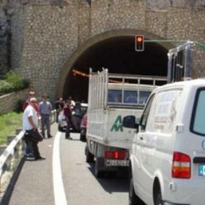 If when arriving at a tunnel or underpass with our vehicle we see that the traffic light located at the entrance of the tunnel is on with a red light as in the case of the image, this prohibits us from entering the tunnel until the light changes to green.
