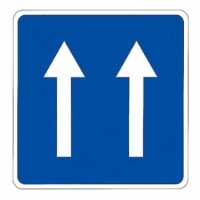 The vertical general instruction sign S-11a in the image indicates that, on the roadway that extends in the direction of the arrows (two lanes in this case), vehicles are required to drive in the direction indicated by the arrows, with travel in the opposite direction being prohibited.