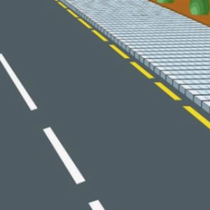 A yellow broken line that is located on the curb itself or next to the edge of the roadway as in the image, will indicate to the driver of a vehicle that parking is prohibited or subject to some temporary restriction along the entire length of the line and on the side on which it is arranged.