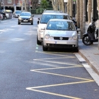 Whenever you encounter a road marking that consists of a yellow zigzag line next to the edge of the road, it is indicating an area where parking is prohibited because it is reserved for some other purpose. Generally, it is used at bus stops and in loading and unloading zones.