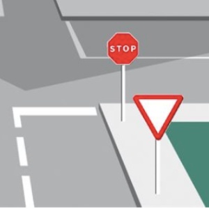 If on a road we find two signs of the same type and they are placed on the same side, as for example in this case, a yield sign and a STOP sign, both vertical signs, the more restrictive one will prevail, which in this case will be the STOP sign that we must obey.