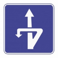 La señal de indicación S-25 de la imagen, indica la proximidad de una salida a través de la cual se puede efectuar un cambio de sentido a distinto nivel. La señal S-22 en cambio indica la proximidad de una salida a través de la cual se puede efectuar un cambio de sentido a un mismo nivel.