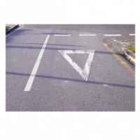 Un triángulo, marcado sobre la calzada con el vértice opuesto al lado menor y dirigido hacia el vehículo que se acerca como el de la fotografía, indica a su conductor la obligación que tiene en la próxima intersección de ceder el paso a otros vehículos.