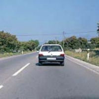 Por una vía fuera de poblado y sin arcenes, circula con su motocicleta detrás de un turismo que circula a la velocidad máxima permitida para ese tipo de vías. ¿Le está permitido adelantarlo?