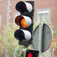 Una luz de color amarillo fijo colocada en un semáforo circular como el de la imagen, informa a todos los vehículos que lo encuentren de frente que deberán detenerse igual que si fuera una luz roja fija a no ser que el vehículo se encuentre tan cerca del semáforo que no pueda frenar con seguridad.