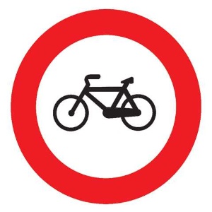 La señal de prohibición R-114 de la imagen, prohíbe el acceso a los ciclos a la vía dónde se encuentre situada. Dado que la prohibición es solo para ciclos, y no ciclomotores, éstos últimos podrán circular por esta vía sin problema.