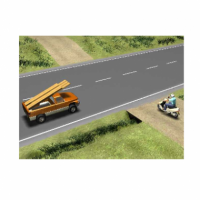 En el caso del ciclomotor de la imagen deberá ceder paso al camión que circula por la principal para posteriormente incorporarse él.