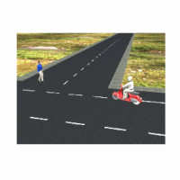 El conductor del ciclomotor va a girar a la derecha para entrar en la vía por la que está cruzando el peatón. ¿Debe ceder el paso al peatón?
