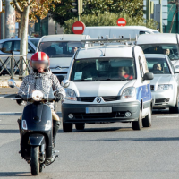 El vehículo que circula detrás de su ciclomotor quiere adelantarlo. ¿Qué debe hacer usted?