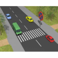También estará incorrectamente estacionada la furgoneta verde ya que según el Reglamento está prohibido estacionar en pasos a nivel, pasos para ciclistas y pasos para peatones como en este caso.