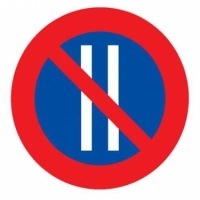 La señal vertical de prohibición R-308 B de la imagen prohíbe el estacionamiento de todo tipo de vehículos en el lado de la calzada en el que esté situada, los días pares del mes. Dado que el día 2 es un número par tendremos prohibido el estacionamiento de nuestra motocicleta.