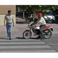Para dejar pasar al peatón de la fotografía, el conductor del ciclomotor se ha detenido invadiendo un paso para peatones. ¿Es correcto?