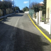 Una línea continua amarilla pintada en el bordillo de la calzada, indica que está prohibida la parada y por tanto también el estacionamiento en el lado de la calzada donde esta situada. En el caso de que la prohibición sea temporal, se indicara mediante señal vertical al principio del tramo.