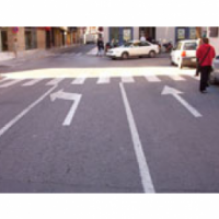 Si encontramos una flecha blanca pintada como marca vial en un carril delimitado por líneas longitudinales, esta indicará que todo conductor debe seguir la dirección, o una de las direcciones, indicada por la flecha en el carril en que aquél se halle o, si la señalización lo permite, cambiarse a otro carril.