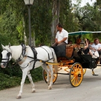 La velocidad máxima en vías fuera de poblado para los vehículos en que su conductor circule a pie, será la velocidad del paso humano, y para los vehículos arrastrados por animales, la del trote del propio animal.