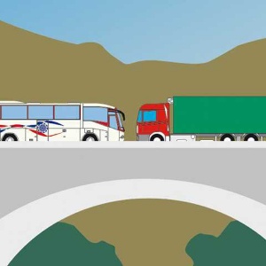 El autobús y el camión han llegado a un estrechamiento en el que no hay señales. ¿Qué vehículo debe circular hacia atrás?