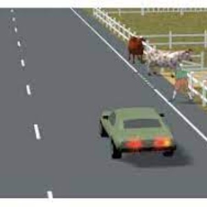 Si el conductor del vehículo verde prevé que los animales pueden invadir la vía, debe moderar la velocidad y, si es necesario, detener el vehículo.