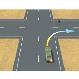 En esta intersección, el peatón tiene la preferencia de paso sobre el vehículo que está girando a la derecha.