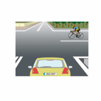 Cuando nos encontremos ante una intersección sin preferencia señalizada por semáforos, STOP, o agentes de circulación entre otros como en el caso de la imagen, estaremos obligados a ceder el paso a todos los vehículos que se aproximen por nuestra derecha como en este caso el conductor de bicicleta. Una vez haya cruzado el ciclista podremos proceder a introducirnos en la intersección.