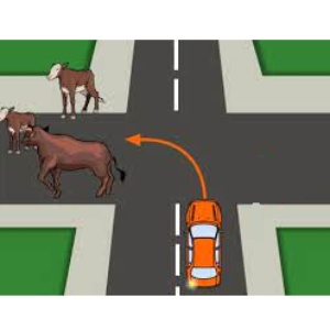 Aunque los conductores normalmente tienen prioridad sobre los animales, debemos cederles el paso cuando realizamos un giro y ellos están cruzando la vía.