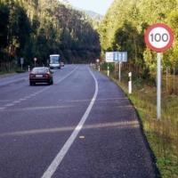Aunque en la imagen exista una señal vertical que indique que la velocidad máxima es de 100 km/hora, los conjuntos de velocidad no podrán superar los 80 km/hora en carreteras convencionales.