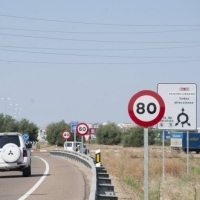 La velocidad máxima y mínima genérica a la que nos está permitido circular por una vía, podrá verse modificada por señalización específica como la que vemos en la imagen, en que debido a un peligro o situación de la vía, deberemos circular a 80 kilómetros por hora en ese tramo de vía. En defecto de señalización específica, se cumplirá la genérica establecida para cada vía, que en el caso de autopistas y autovías será de 120 km/hora.
