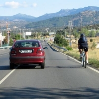¿Está permitido adelantar a un ciclista fuera de poblado, dejando una distancia de 1,25 metros y pisando la línea continua que separa los sentidos de la vía?