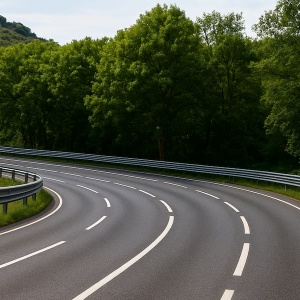 Excepción: se permite solo cuando los dos sentidos están claramente separados y el adelantamiento puede hacerse sin invadir la zona del sentido opuesto (p. ej., mediana física, barrera, doble línea continua entre sentidos, o dos o más carriles en tu mismo sentido).