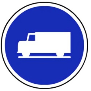 Esta señal es de obligación y obliga a los vehículos de transporte de mercancías (camiones y furgones) a circular por la calzada en cuya entrada se encuentre colocada.