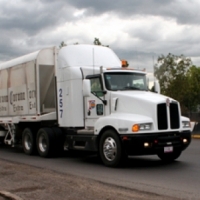 - B) Camión provisto de un mecanismo que permita elevar y/o girar la caja para realizar la descarga lateral o trasera.