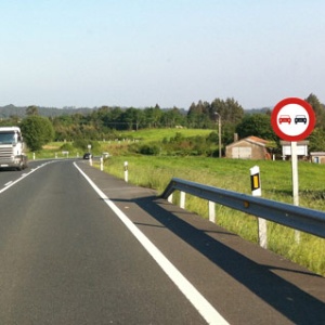 Conduce un autobús por una vía que dispone de tres carriles en el mismo sentido, ¿podría adelantar a un camión cuando rebase esta señal?