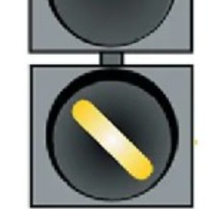 Si el semáforo indica una luz con una línea transversal hacia la izquierda como en la imagen, podremos continuar la marcha solo para girar en esa dirección.