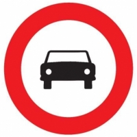 La señal vertical de prohibición de entrada R-103 que vemos en la imagen, indica que en la vía en la que se encuentre tendrán prohibida la entrada todo tipo de vehículos a motor excepto las motocicletas de dos ruedas sin sidecar. Dado que el autobús es un vehículo a motor, deberá buscar otro itinerario ya que no podrá acceder a dicha vía.