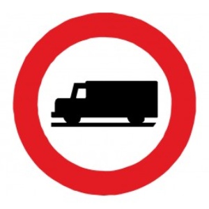 Esta señal prohíbe la entrada a vehículos destinados a transporte de mercancías, es decir, camiones y furgones. Por tanto los autobuses sí pueden circular porque no les afecta.