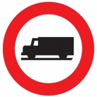 La señal vertical de prohibición de entrada R-106 que vemos en la imagen, prohíbe el paso en la vía en la que se encuentre, a todos los vehículos que realicen transporte de mercancías (camiones y furgonetas esencialmente). Dado que el autobús es un vehículo de transporte de viajeros y no de mercancías, esta señal no le afectará.