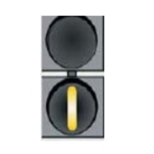 Un semáforo que consiste en una franja blanca vertical, no intermitente, sobre un fondo oscuro indica a los vehículos a los que se dirige que está permitido el paso si van a seguir de frente. Si la franja fuera horizontal, indicaría que deben detenerse, como si se tratara de una luz roja.