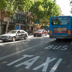 Si la vía por la que circula tiene un carril reservado para autobuses, delimitado por una línea longitudinal continua, ¿puede atravesar dicha línea con su autobús?