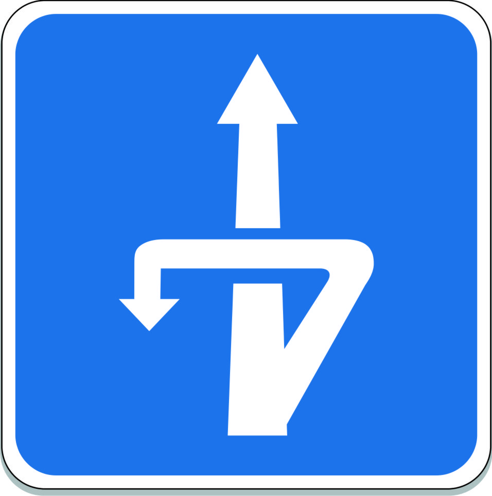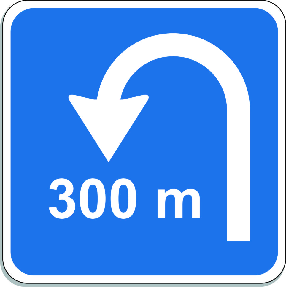 Por su parte las señales que indican en qué lugar si se puede realizar la maniobra son la S-22 que indica la proximidad de un lugar donde se puede realizar un cambio de sentido al mismo nivel y la señal S-25 que indica lo mismo pero a distinto nivel.