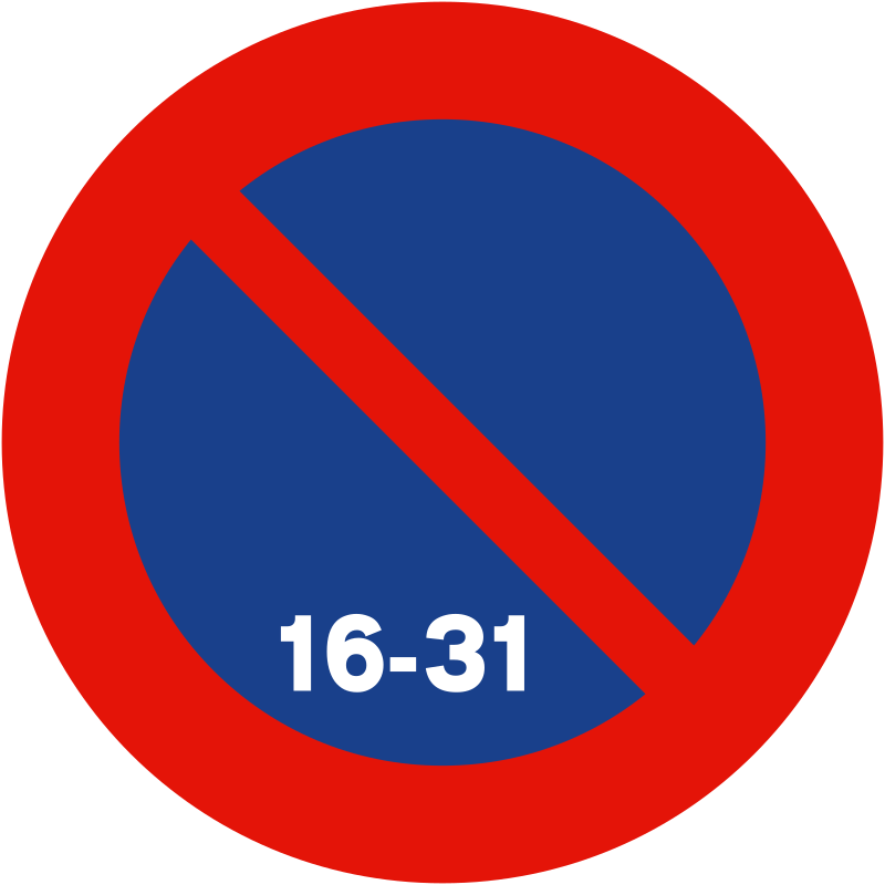 La señal R-308d por su parte prohíbe estacionar desde las 9h del día 16 hasta las 9h del día 1 con las mismas características que la señal R-308c.