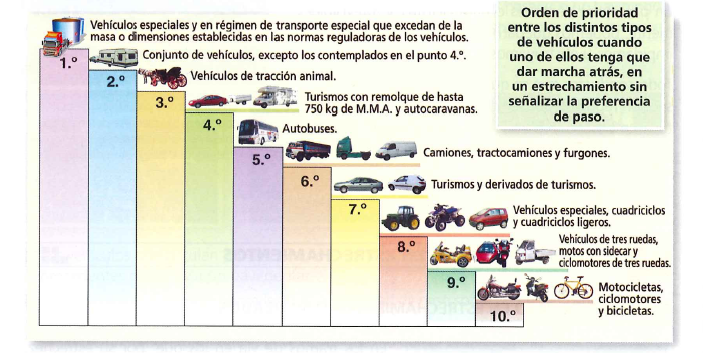 Existe también un orden de preferencia entre vehículos cuando deben dar marcha atrás, sin perjuicio de lo que mande el Agente de la Autoridad que ordene la circulación:
