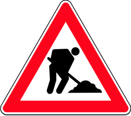 La señal P-18 advierte de la proximidad de un tramo de vía dónde se están desarrollando obras.