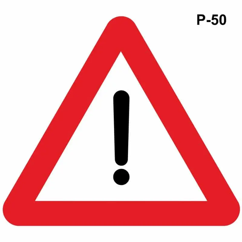Cuando el peligro que se da en la vía no tiene símbolo establecido se utilizará la señal P-50 para advertir de un peligro diferente de los advertidos por otras señales, y ésta se complementará con una placa con indicación del peligro del que se trate.