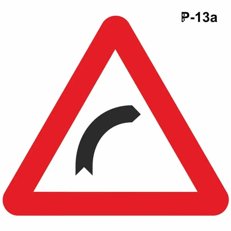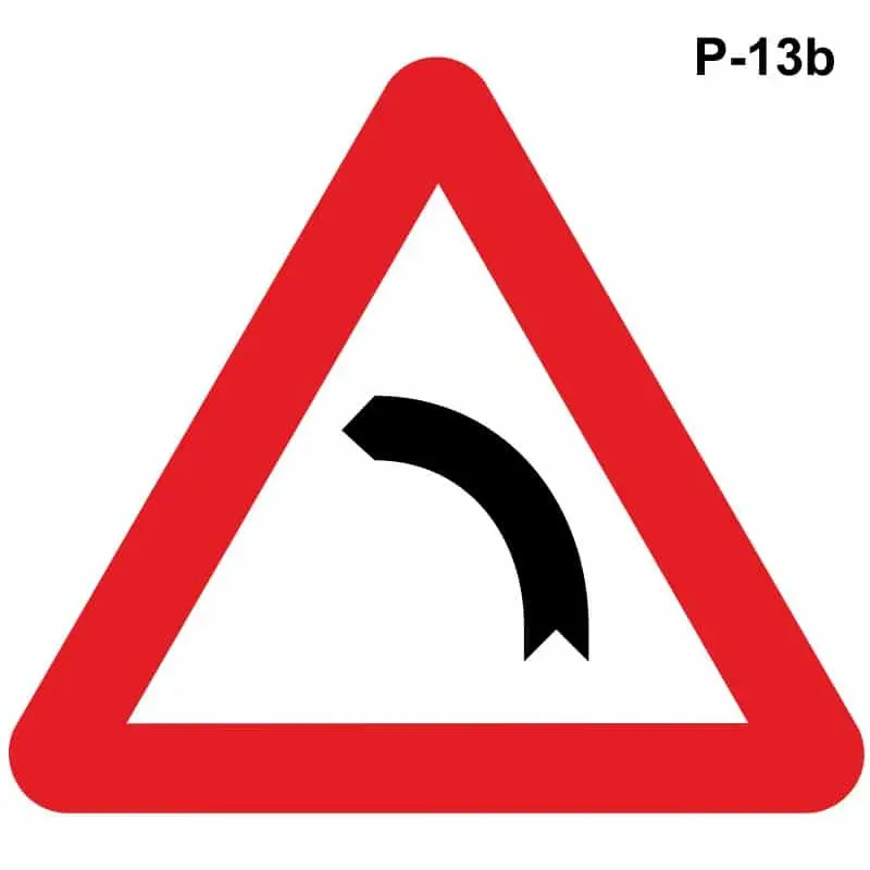 La P-13A advierte de una curva hacia la derecha y la P-13B de una curva a la izquierda.