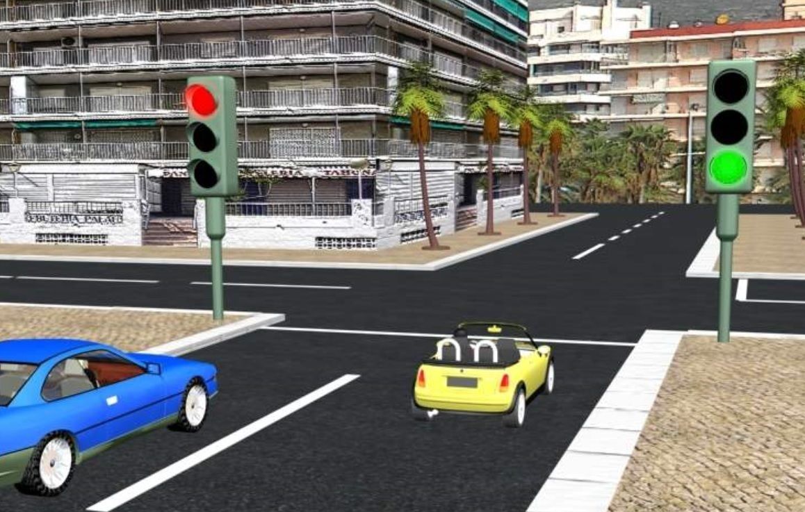 Si la intersección cuenta con un semáforo a su entrada deberemos colocar el vehículo en un lugar que nos permita ver las luces del mismo y sin rebasar su línea de detención.