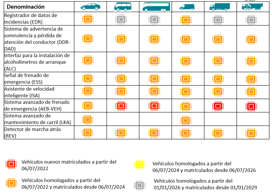 Calendario de implantación obligatoria de los ADAS en la UE.