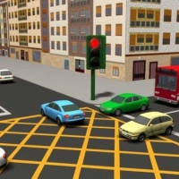 8. En un cruce, se enciende la luz roja y el vehículo azul bloquea el paso. ¿Qué debe hacer?
